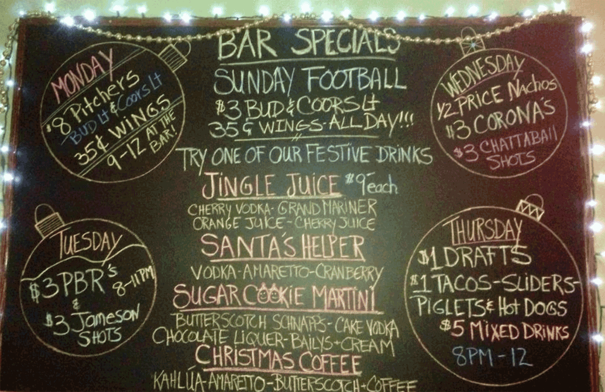 TAILGATE THURSDAYS- 8pm-12am $1 Drafts, $5 mixed drinks- $1 Sliders, Tacos, Piglets and Hotdogs!